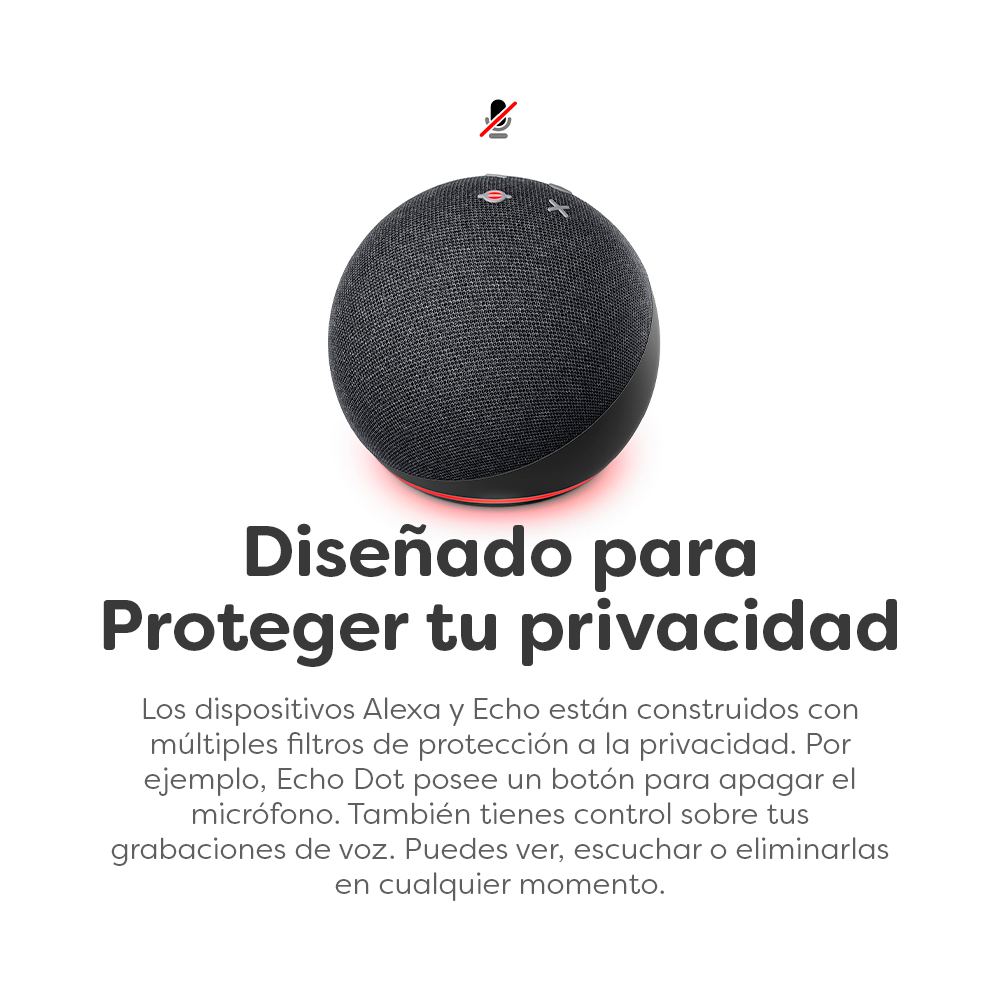 DISEÑO QUE PROTEGE TU PRIVACIDAD – Amazon no se dedica a vender tu información personal a terceros. Cuenta con varias capas de controles de privacidad, incluyendo un botón para desactivar los micrófonos.