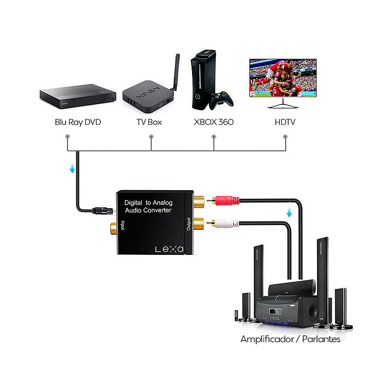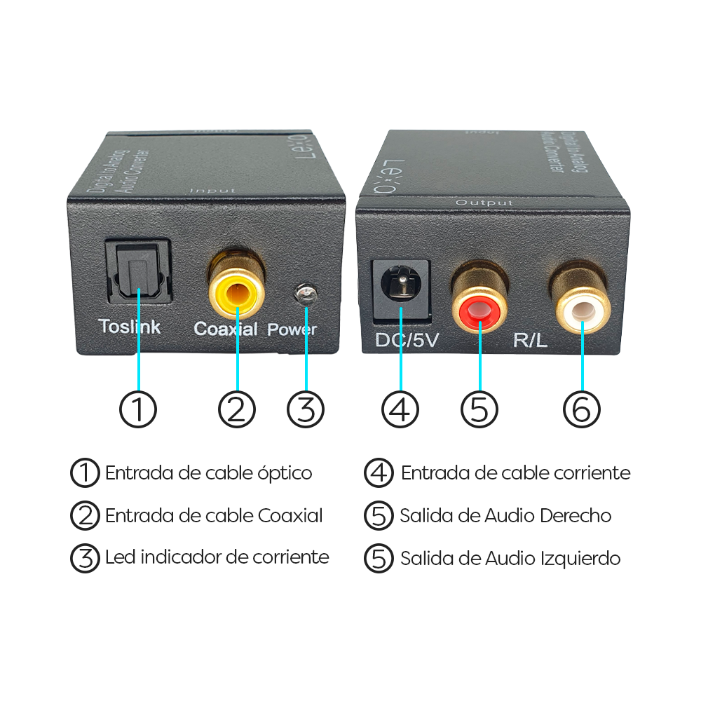 – Convierte Audio digital coaxial o toslink a audio analogico L/R