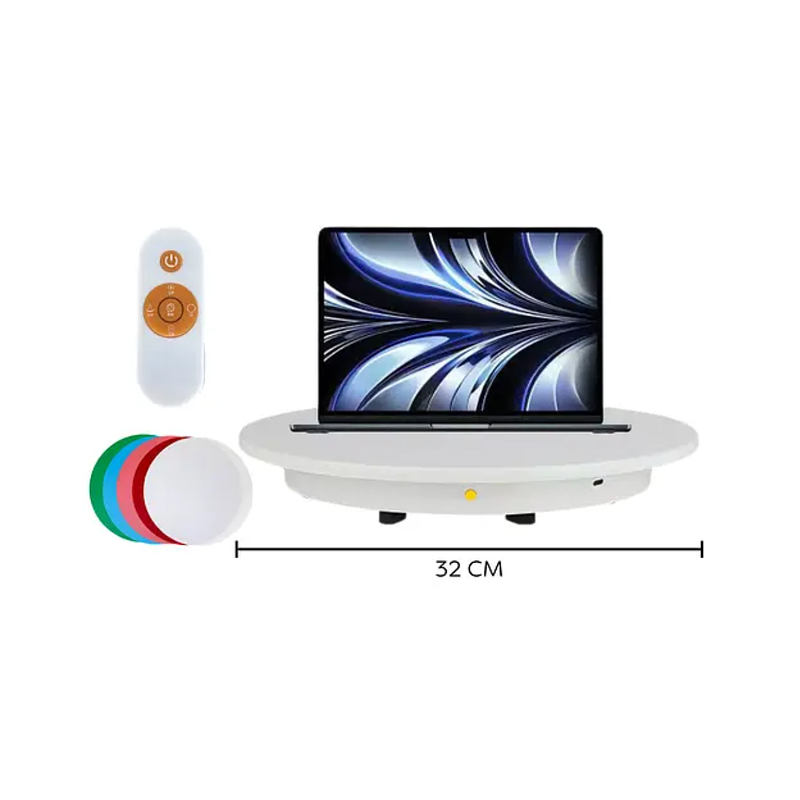 Soporte giratorio motorizado 360° de 60 cm, diseño flotante. Perfecto para pantallas, permite rotación automática con control remoto.