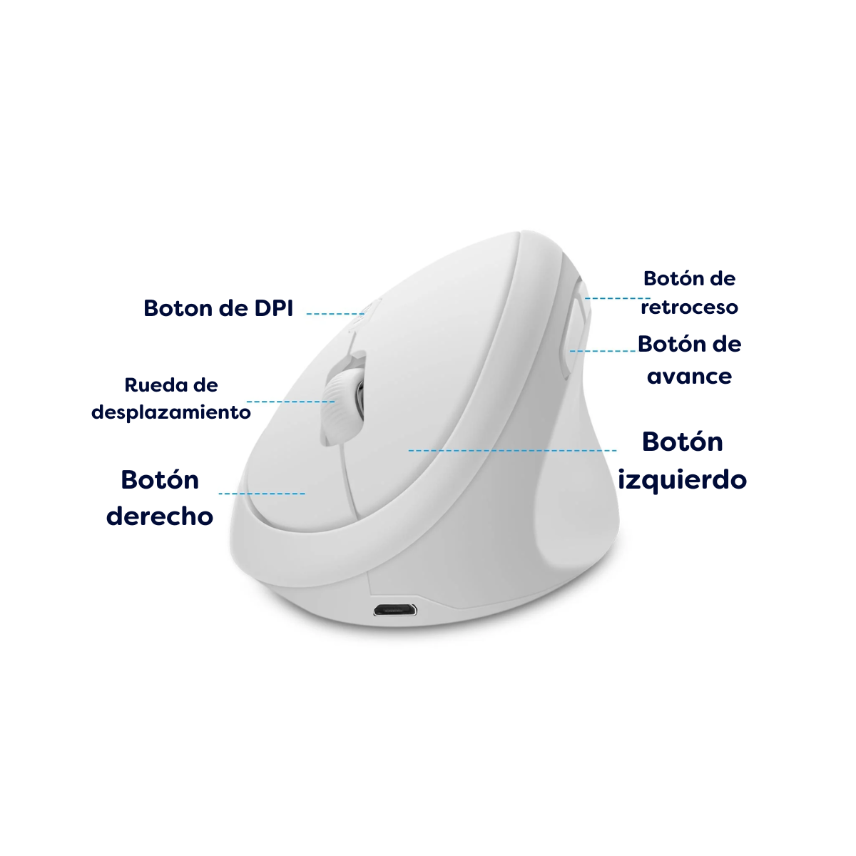 Mouse inalámbrico vertical diseñado ergonómicamente para mantener la mano en una posición natural, ayudando a reducir la fatiga y la tensión en muñeca y brazo. Su diseño cómodo permite un uso prolongado sin molestias, ideal para trabajo, estudio u oficina en casa. Ofrece control preciso, manejo suave y libertad total sin cables, brindando una experiencia más saludable y eficiente durante el día a día.