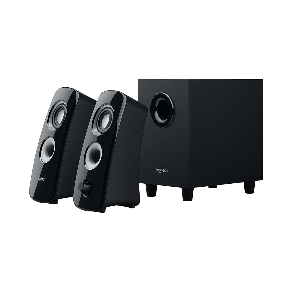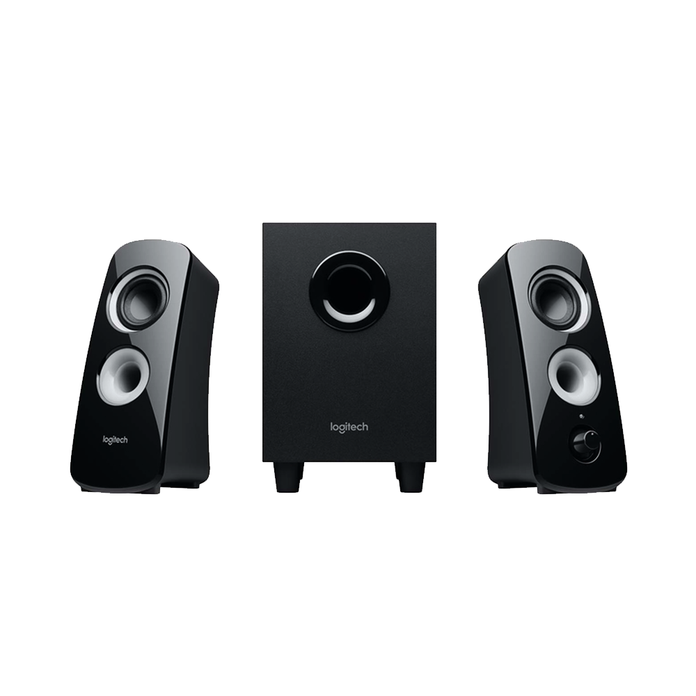 Conecte hasta dos dispositivos compatibles y acceda al control de encendido y volumen en el altavoz derecho. Ajuste los graves desde la perilla dedicada en la parte posterior del subwoofer.