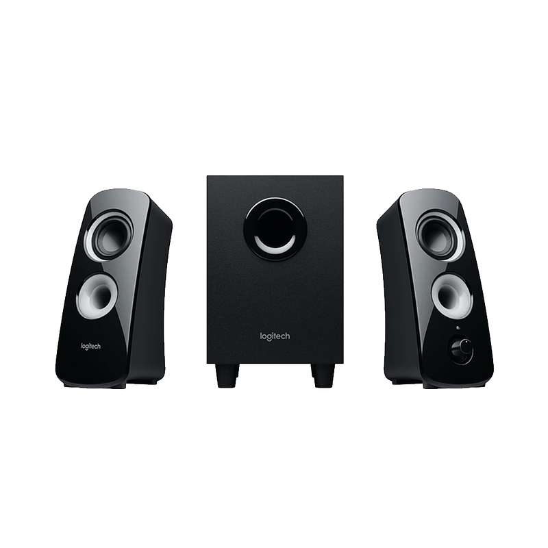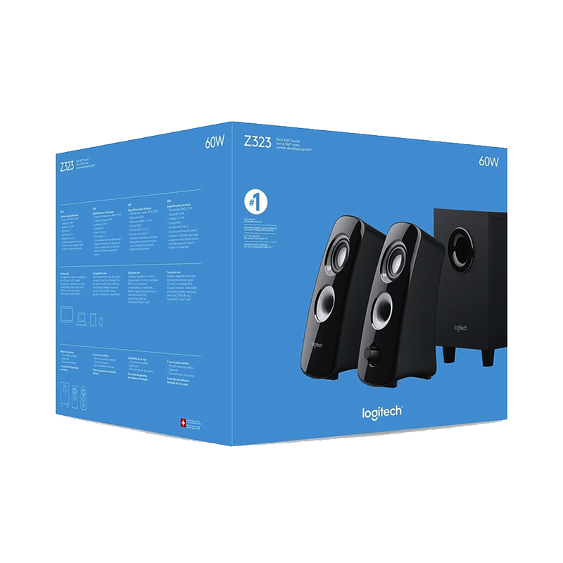 El sistema de altavoces 2.1 de 60 vatios de potencia máxima ofrece un audio rico en toda la habitación desde su diseño de altavoz de doble controlador. Disfruta de una rica experiencia de audio desde cualquier dirección. El subwoofer orientado hacia abajo proporciona unos graves potentes que dan vida a tus vídeos, juegos y música.