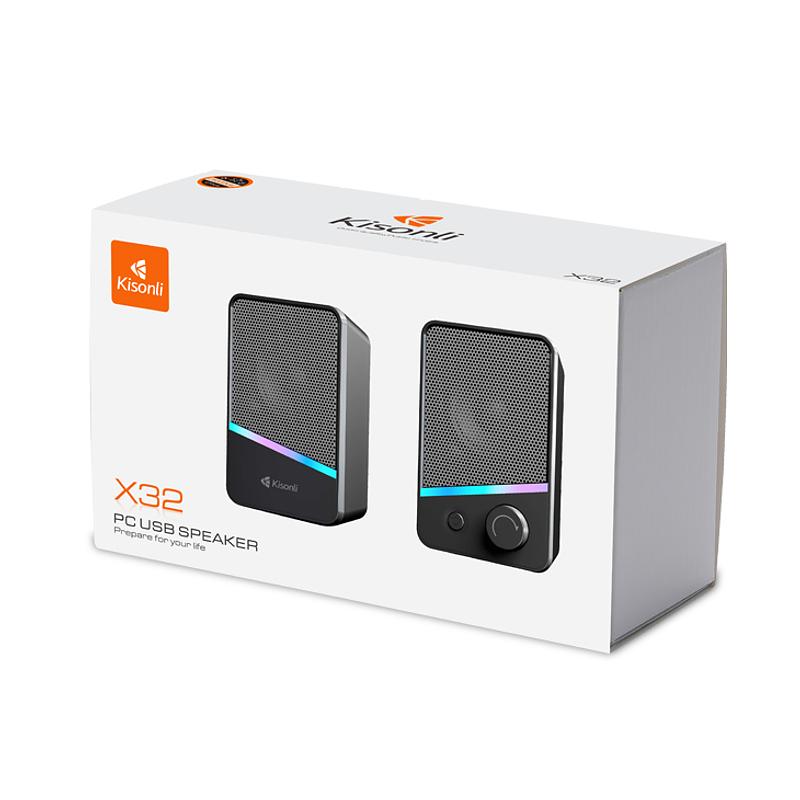 Potencia tu experiencia multimedia con el Parlante para PC X32 RGB. Ofrece un sonido estéreo definido que mejora notablemente el audio de tu computador para música, juegos y contenido digital.