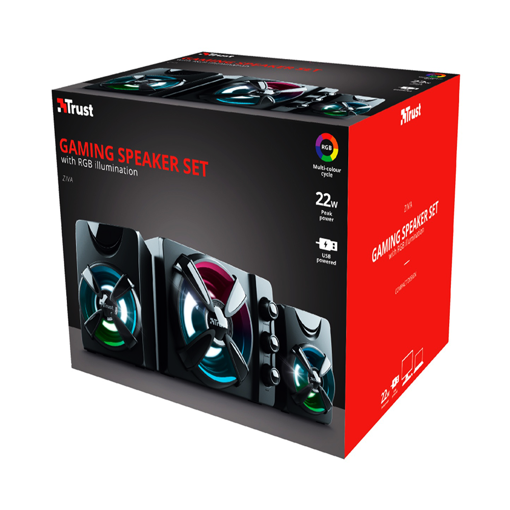 Parlantes Trust Ziva 2,1 Usb Plug 3,5 22w Iluminacion Rgb