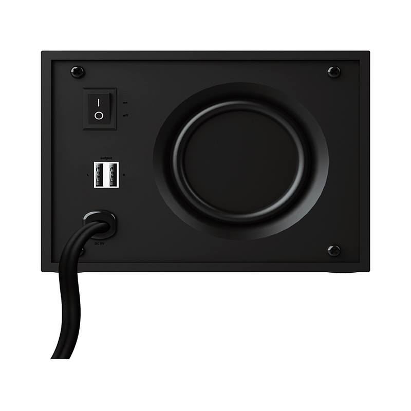 Este compacto juego de altavoces ocupa poco espacio en el escritorio. Pero no dejes que su reducido tamaño te engañe, produce un sonido nítido.