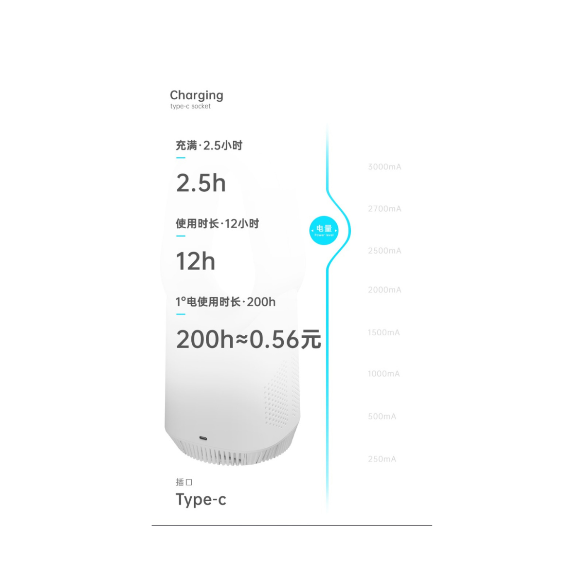 Ventilador sin aspas diseñado con botón táctil para cambiar 3 velocidades (suave, medio, fuerte) para satisfacer todas tus necesidades.