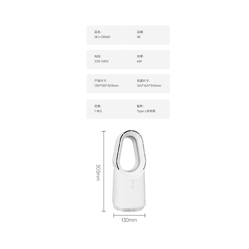 Este es un ventilador de pie sin aspas de 30 Centimetros de Alto que puede controlar con los botones tactiles, ajustar a 3 velocidades. Fácil de operar, intuitivo y claro. Este producto no solo tiene un diseño de apariencia único y hermoso con 5 modos de iluminación para noche, también garantiza el rendimiento y la calidad del producto, tanto en general como en los detalles. En general, este es un ventilador de piso sin aspas que combina buena apariencia, funcionalidad y rentabilidad.